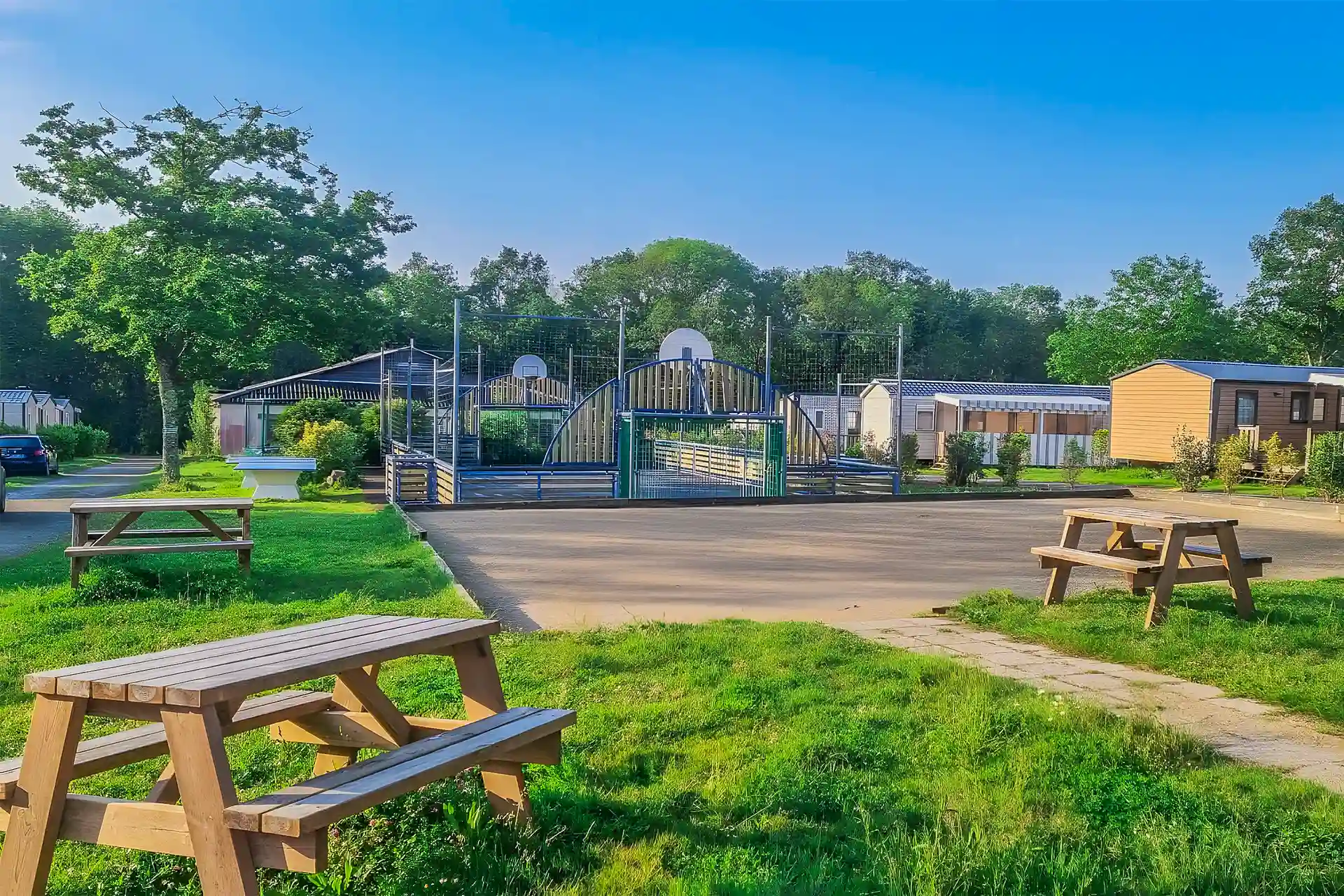 - Aires de jeux équipées de trampolines et d’un espace pour les jeux de ballon